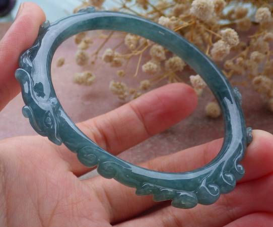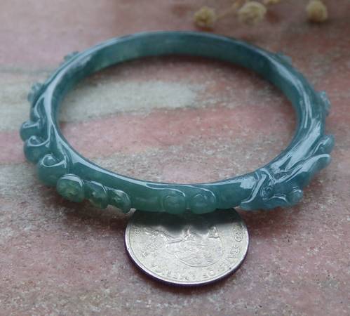 Certified A JADE JADEITE Icy Green Handmade Phoenix Bangle Bracelet 55 - $350 (Pasadena)