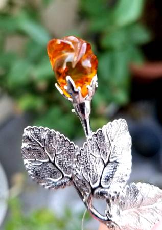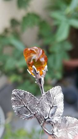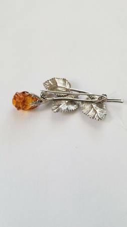 BRAND NEW SILVER BROOSH WITH AMBER- Never worn Length 55mm Main Stone Shape --flower Base Metal --Sterling Silver Main Stone Length --9 mm