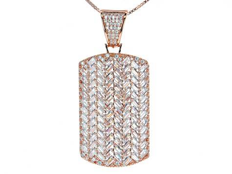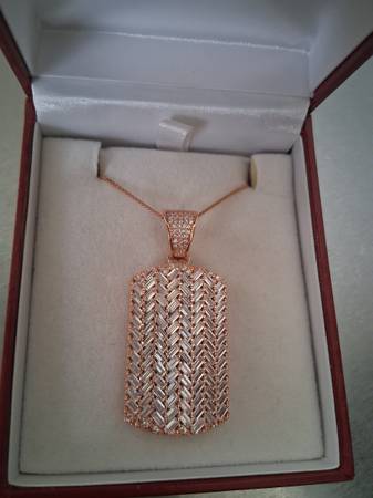BELLA LUCE STERLING SILVER PLATED IN ROSE GOLD DOG TAG STYLE PENDANT COVERED IN 8CT OF CZ BAQUETTES 2" X .75" NEW WITH 18" CHAIN LARGE BALE WILL FIT LARGER CHAINS