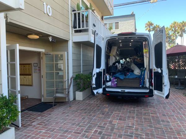 Clean and newer height roof extended length cargo van with all the necessary equipment like appliance/furniture and flat dolly, blankets, ramp, straps etc..covering the entire Los Angeles area and beyond.