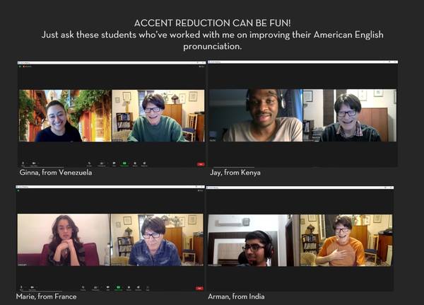 No other accent reduction specialist is as uniquely qualified to help you sound more like a native speaker, whether engaging with clients or delivering oral presentations or performing scenes.