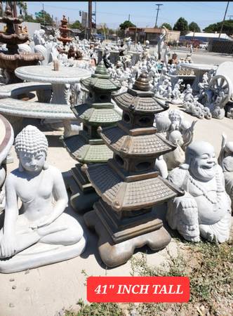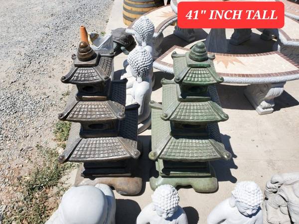 CONCRETE CEMENT PAGODA LANTERNS FOR SALE. ( 41" INCH TALL) CONCRETE CEMENT PAINTED 🎨 PAGODA LANTERN $240 EACH. NATURAL GRAY CEMENT NON-PAINTED PAGODA LANTERN $200 EACH SE HABLA ESPAÑOL