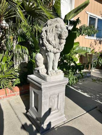 CONCRETE CEMENT LION STATUES AND PEDESTALS FOR SALE. CONCRETE LION IS 2' FEET TALL @ $140 EACH. CONCRETE PEDESTAL IS 13"X13"X20" @ $140 EACH SE HABLA ESPAÑOL