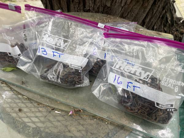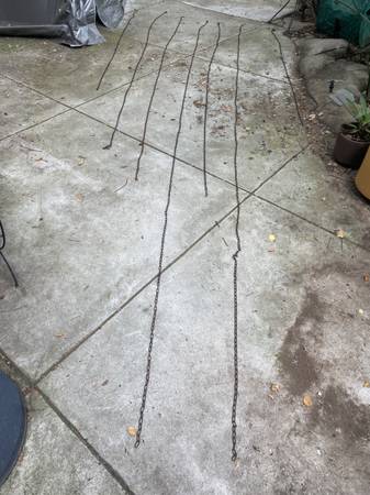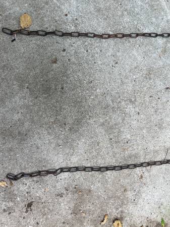 Sold at $1 per foot Great for hanging planters Black chains, old, sort of rusty in places An individual link is 3/4" x 3/8" Comes in strands of 16, 13, 9, or 6 feet