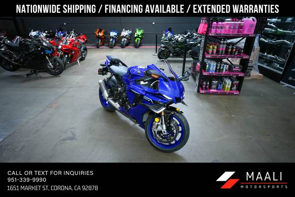 Maali Motorsports is proud to present this 2025 Yamaha YZF-R1, the newest evolution of Yamaha’s legendary liter-class superbike and a machine that continues to carry the brand’s deep MotoGP heritage. Powered by the iconic 998cc crossplane-crank inline-four producing 200 horsepower, the 2025 R1 delivers explosive acceleration, a smooth and linear torque curve, and the unmistakable CP4 soundtrack riders love. The latest generation features refined aerodynamics, updated electronics management, and enhanced rider-aids governed by Yamaha’s six-axis IMU — including traction control, slide control, lift control, launch control, and a bi-directional quickshifter. With its aggressive styling, lightweight chassis, and track-focused DNA, the 2025 R1 remains one of the most capable and desirable superbikes on the market, engineered for riders who demand precision, performance, and pure racing excitement.
