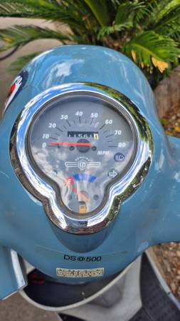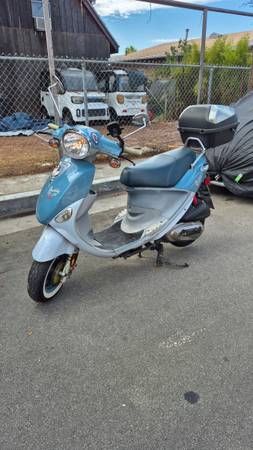 ST TROPEZ EDITION. RARE AND BEST COLOR. VISUALLY AND MECHANICALLY IN GREAT CONDITION. GOES TO 65 MPH N FAST. NEW BATTERY, NEW REAR TRUNK, FRESH OIL N FILTER, FRESH GEAR OIL. NEEDS NOTHING. STARTS IN ONE PUSH BUTTON EVERY TIME. 11560 MI. I RODE IT PAST 3 YRS ALONG WITH OTHER SCOOTERS. THIS IS THE MOST RELIABLE AND EASY TO RIDE AND SERVICE. 10 MIN OIL CHANGE N FILTER. I DID IT EVERY 1000 MI. MADE BY REPUTABLE TWAINESE COMPANY THAT PRODUCED PIAGGIO ITALIAN SCOOTERS. TEXT FIRST. I DONT ANSWER UNKNOWN CALLS. 213 568 89 TWO TWO. SERIOUS CALLS ONLY. HAVE CASH IN HAND TO TEST RIDE