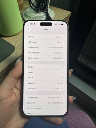 Selling iPhone 15 Pro Max with 1TB of memory, slight scratch on the screen.