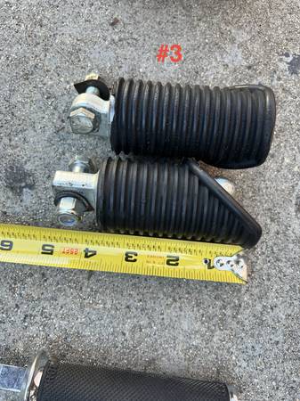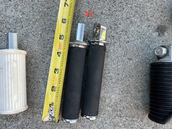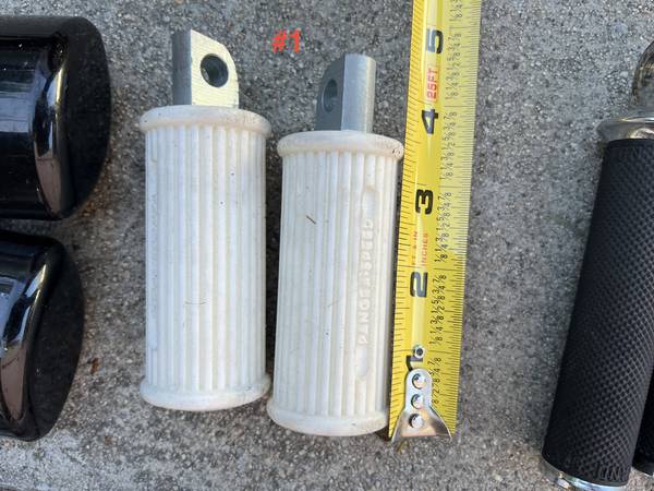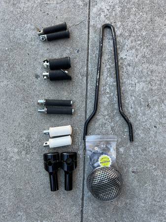 Misc. Harley parts: 1. Pangea Speed pegs (white) 2. Roland Sands pegs (black) 3. HD stubby pegs (black) 4. HD pegs standard (black) 6. Sissy bar w/o bracket 7. HD Risers (black) Make me an offer on...