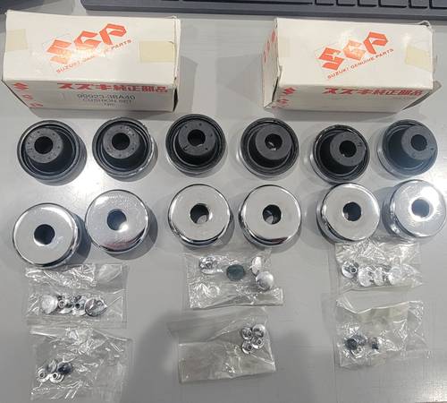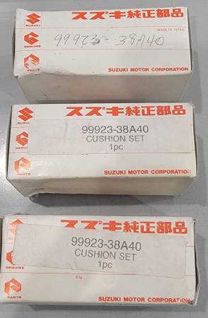 Fits any: ***** Year: 1992 to 2000 **** Make: Suzuki **** Models: VS800 Intruder **** OEM Genuine Suzuki part #99923--38A40 Made in Japan. **** Note: 4 NEW cushions on each box & Caps. **** $20 each box. ***** It might fit other Suzuki models and years. Please check