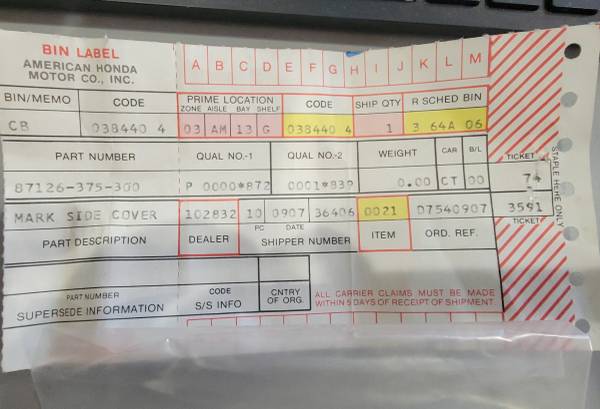 Fits any: **** Year: 1970s **** Make: Honda **** Model: CB500 **** OEM Genuine Honda part # 87126--375-300- **** Qty: 1 **** Note: it might fit other years. Please check.