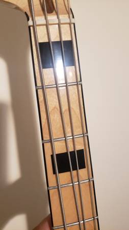 Thin C shaped Maple neck, Bound 9.5” radius Maple fingerboard with the black block inlays and medium jumbo frets,
