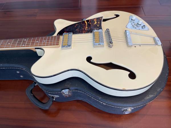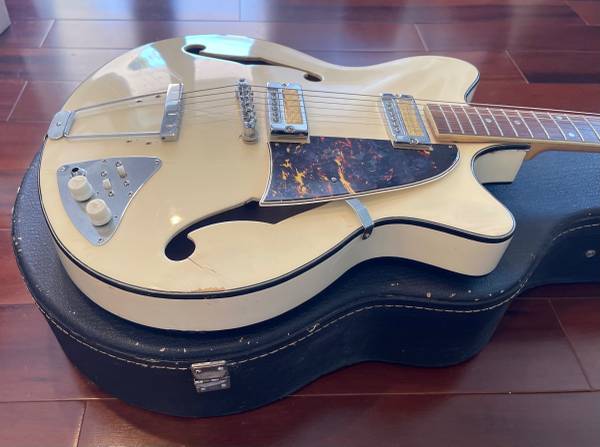 Selling a good condition, 1960’s Vintage Guyatone SG12T hollow body in rare white. Made in Japan. It has the coveted/rare original Guyatone Goldfoils - a favorite of Blake Mills, Ry Cooder, etc. The...