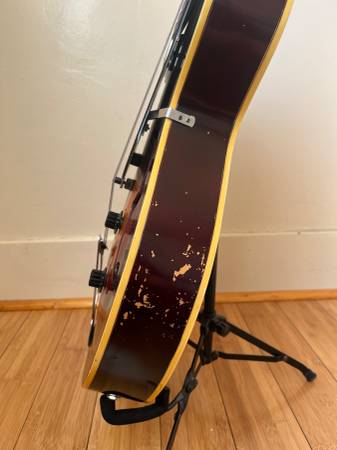 Rare guild guitar, made in the Hoboken NJ factory. I tried to take pretty detailed pics here to show the exact condition. Plays well, the volume pot is scratchy and needs some deoxit. I have a soft case for it.