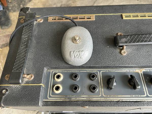 Corner bumpers, grill vents, grill cloth, Vox logo, and foot switch are non-original.