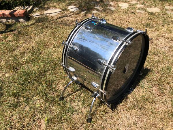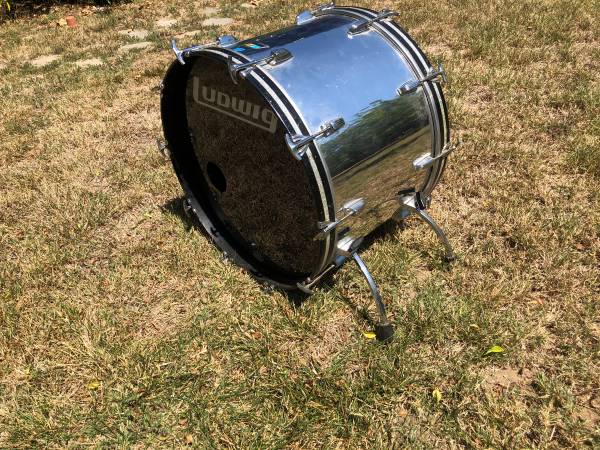 Chrome wrap Ludwig 24" kick bass drum. Vintage green and blue logo. This thing is a canon. Only selling because need space. See pictures. Cash $500