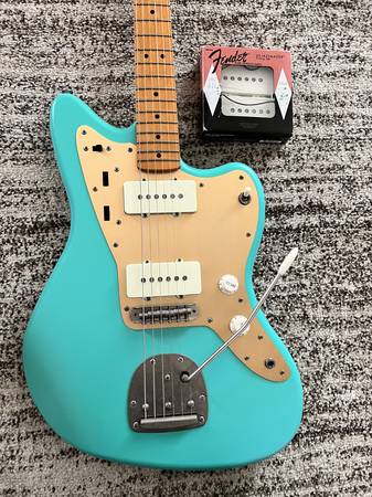 What we have here is the "Vintage" Edition of the 40th Anniversary Squier Jazzmaster. It has a nice satin neck. Great feel. Pick ups have been upgraded with Pure Vintage '65 Jazzmaster Pickups. Original pickups included. Professional set up and plays great.