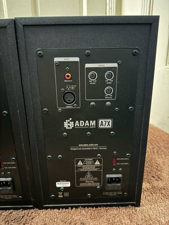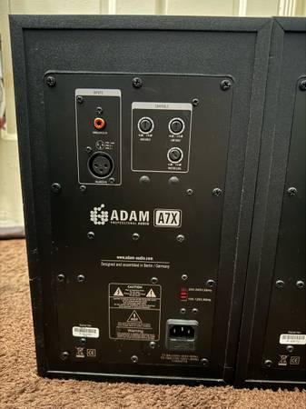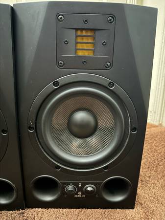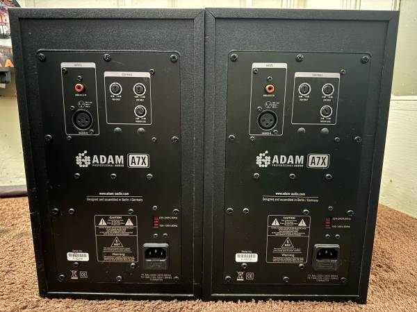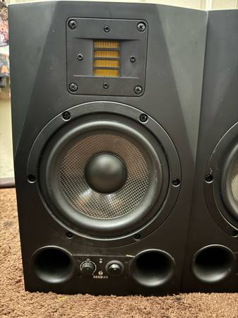 Selling a used pair of Adam A7X Studio Monitors. Work great and sound phenomenal. Have some marks from use as pictured, but overall in good shape. Price is firm. Must pick up in Hollywood.