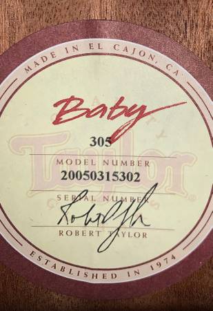 Baby Taylor made in the USA, electric acoustic guitar with original carrying case, no fret ware, very low action, plays smooth and easy, great choice for a child or short fingers. Ebony fingerboard and bridge, DiMarzio made in USA pickup sounds crisp and clear for amplified application.$ 300 cash, firm, no trades, pick up in Hollywood