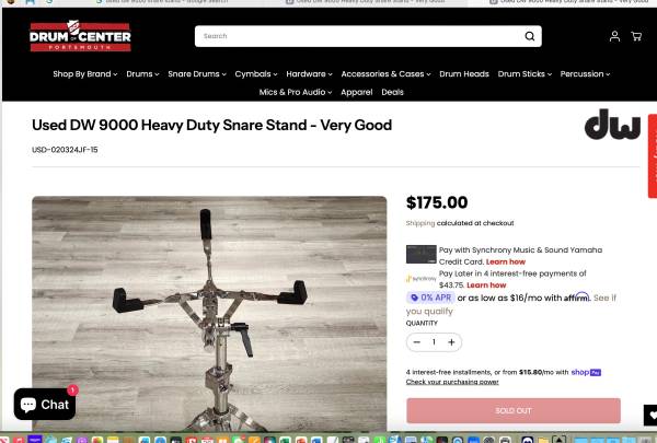 IF YOU CHECK CURRENT PRICES FOR THE DW 9000 SNARE DRUM STAND IT WILL COST $290—NOT INCLUDING TAX AND SHIPPING. IF YOU CHECK THE PRICE OF A USED DW 9000 SNARE STAND, IT WILL COST YOU ABOUT $170-$219. I have included some photos for you