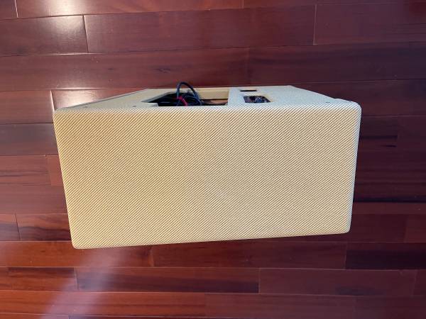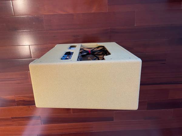 the previous owner installed a “Fender Twin Amp” badge on the cabinet, which was blank/not labeled. Original listing photos are uploaded
