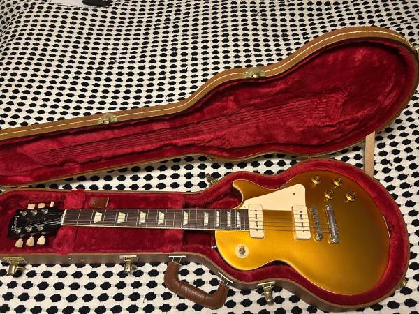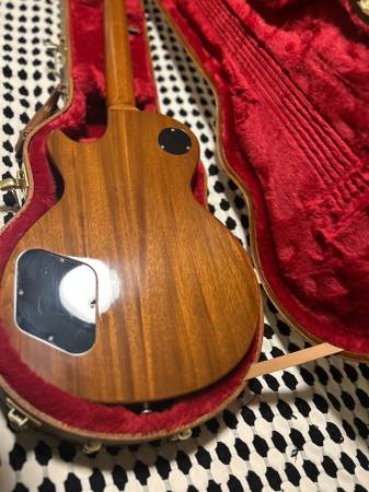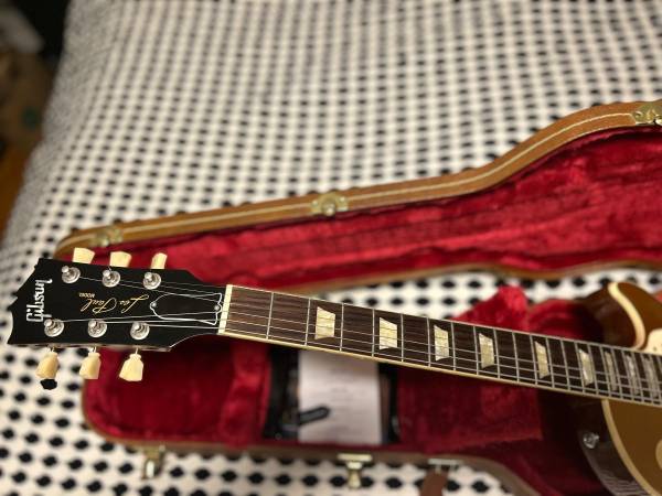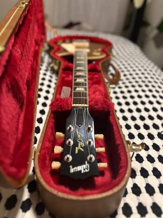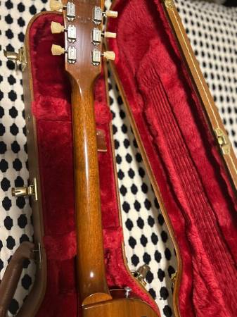 Excellent Condition… the subject line says it all. Only issue is I THINK the previous owner had some tape … only thing I can think of, that messed w the finish a little… you have to look close… it’s going to get buckle rash anyway. Comes with OG Gibson case and case candy.