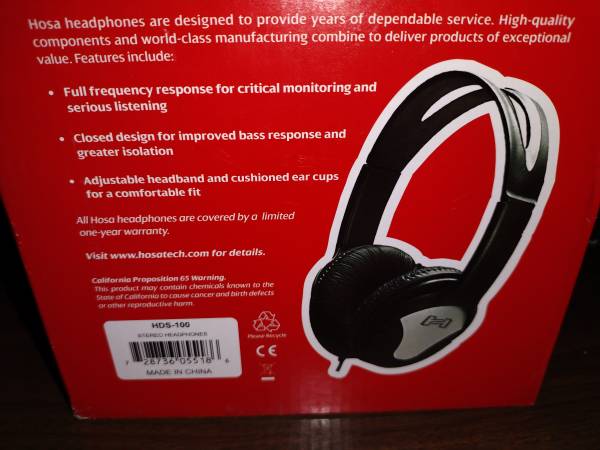 "Brand New With Box'' Hosa Hds-100 stereo headphones. Comes with 1/8" -1/4" adapter. . Hosa headphones are designed to provide years of dependable service. More Info:...