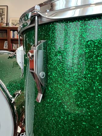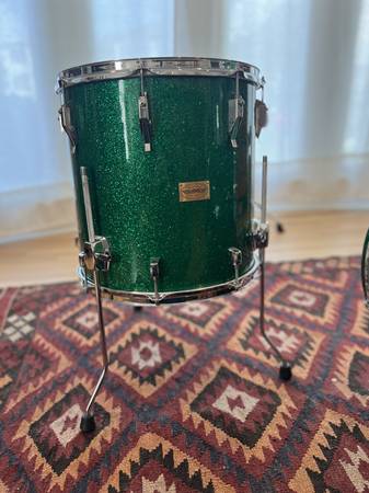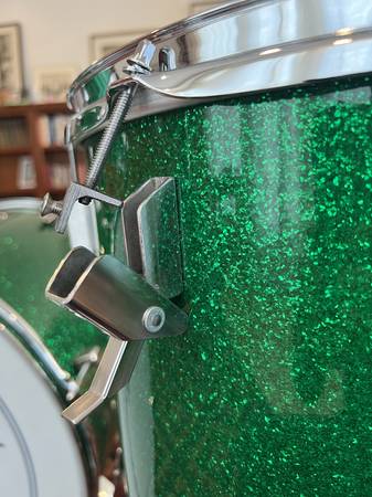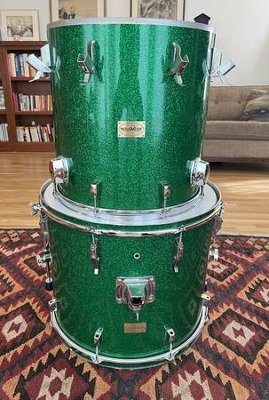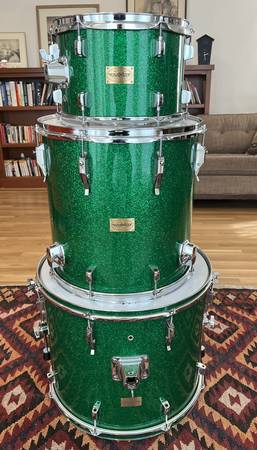 This is a very cool, rare Green Sparkle nesting drum kit that infamous drum builder Nodar Rode custom made for me at his shop in Manhattan in 2004. The sizes are 12x8, 16x16, 20x17.