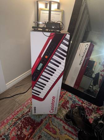 Red Casio Keyboard with a seat, peddle, and stand. Need to get rid of it. Never owned. Unopened. Still in box. Must pick Up!