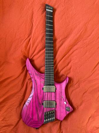 This Kiesel killer/Strandberg strangler features an ash body, micarta neck, Richlite fretboard with a 16" radius, and stainless steel frets for ultra-smooth playability. The headless design makes it incredibly lightweight and perfectly balanced, ideal for studio, stage, or travel.