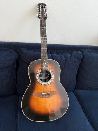 Vintage burst or tobacco burst , acoustic/electric 12 string Ovation 1755 from the 80’s, with original case. Recently set up professionally.