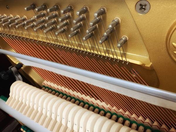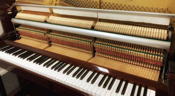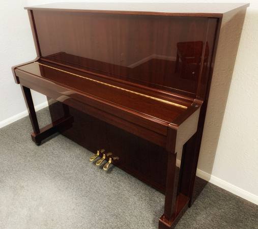 This professional studio upright, made in Japan in 2000, features a beautiful polished mahogany cabinet and is in excellent condition, both mechanically and cosmetically.