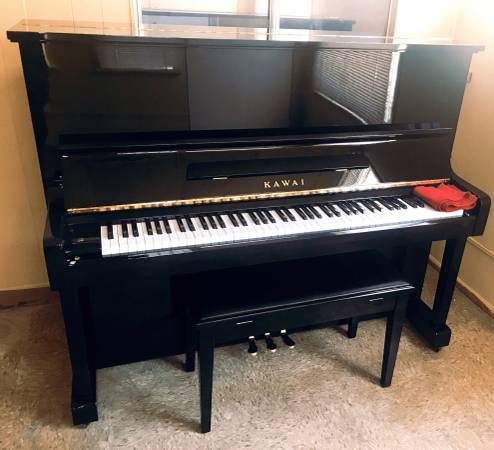 Gorgeous glossy black color with wonderful condition made in Japan. It has unbelievably fantastic sound softer, warmer and a beautifully balanced, even tone over the whole piano and the bass was rich and powerful full volume. The real key touch was highly responsive and solid feels, it was simply a glorious piano. This piano is definitely lucky pick instrument. Three pedals: left soft, middle practice, right sustain. Tuned and regulated action just ready to play. It will be great for family musical instrument!!!