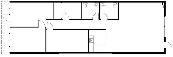 Reception, two private offices, restrooms, kitchen area, and large open office area