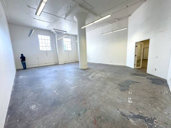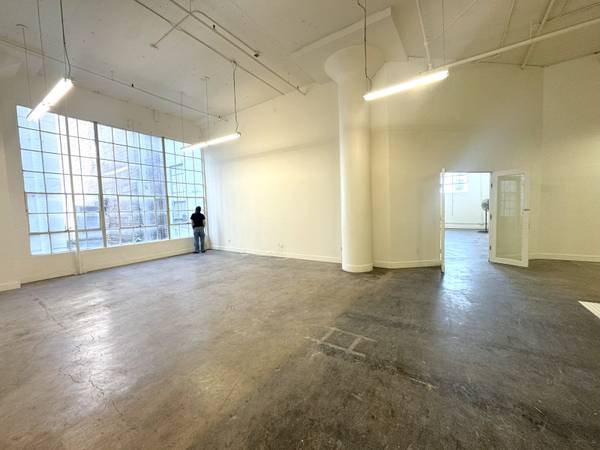 Industrial Creative Work Spaces located on Los Angeles St between 5th St and 6th St in DTLA. This property is technically located in the Historic Core District but it's right on the edge of what's known as the TOY DISTRICT aka SKID ROW. These spaces are MIND BLOWING jaw droppers! Walk in and experience these glorious spaces with SOARING CEILINGS many of which have PRIVATE BATHROOMS and KITCHENETTES. There is DOCK HIGH LOADING with BACK ALLEY ACCESS and FREIGHT ELEVATOR so this building is great for companies who do a lot of LOADING/UNLOADING. Building has on-site management/maintenance and 24/7 ACCESS. Spaces do NOT have central AC but one can bring portable units or possibly pay an increased rate to get central AC installed. This space is a wide open area with SOARING CEILINGS, a huge open room, a smaller room, a PRIVATE BATHROOM with shower, and a KITCHENETTE! Spaces are 100% commercial space, not residential. Get them now before someone else swoops them up! Electricity, parking, and internet not included. There's public parking located next door for a monthly fee. Ask advantages of signing 5-year lease! All our listings are minimal one year leases, but this owner may require longer than one year. Showings by APPOINTMENT ONLY. We are a real estate brokerage, if this space doesn't meet your needs we may have something else that does! TEXT 213-304-4727 now or submit the Quick Contact Form on our website realestateLA.com ! And don't forget to follow us on social media @QuixoticRealty thank you!