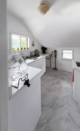 This open plan, top floor through unit is complete with small kitchen and a terraced work area. The space is ideal for a writer, therapist, healer, architect, or other types of deep knowledge work that thrive in beauty and calmness.