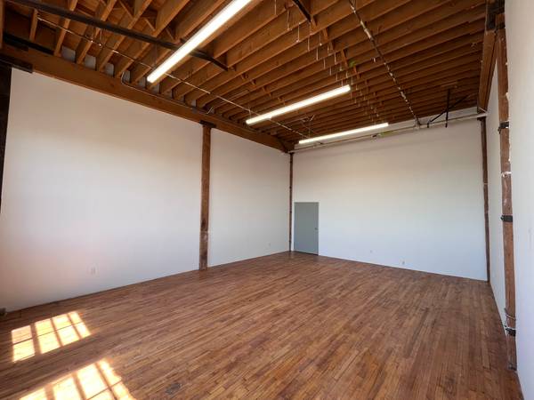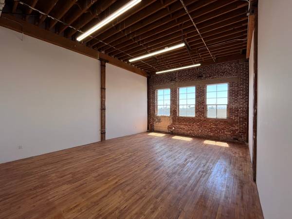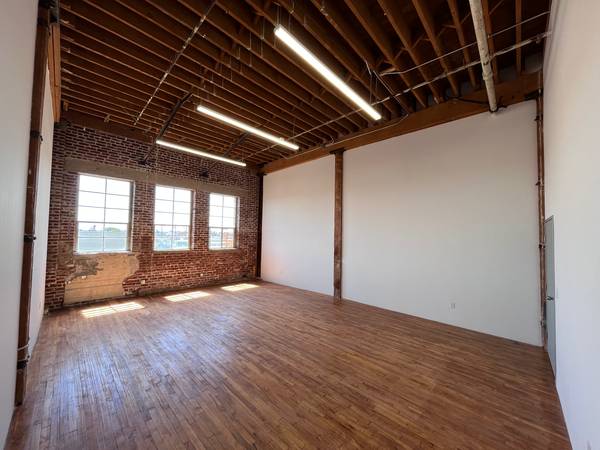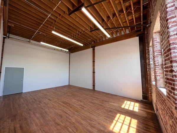 Pico Studios is a newly renovated artist loft building located near the Arts District in Downtown Los Angeles. The studios are in a beautiful historic building. We love the area because it's very calm compared to most of downtown. It has a common shared kitchen and dining area. The building has beautiful exposed brick and has been renovated to the standards of a gallery. Huge ceilings, hardwood floors, and patinaed steel beams. There is a parking lot attached the building for reserved spots. Larger units would be great as a shared space for a few artists. Amazing light. Units in sizes ranging from 325 sq ft – 1600 sq ft. Air Conditioning. Prices range from $2.10-3 sq ft.