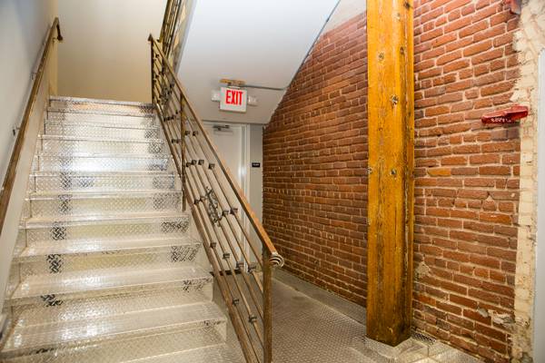 Loft space includes: brick walls, exposed brick, exposed wood ceiling beams, open/flexible floor plans, high ceilings, concrete flooring (first floor), wood floor (second and third floor), and lots of natural light.