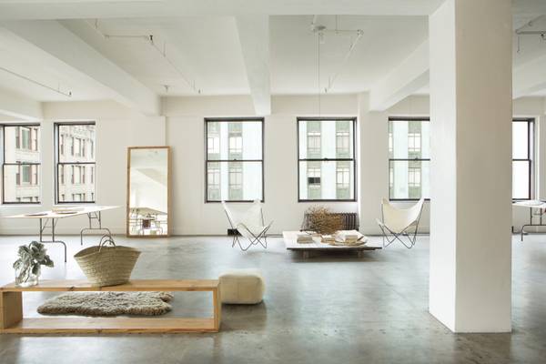 The space is nicely suited for a gallery, a showroom, an architect or graphic designer's studio, or a combination of the above. Some of the photos show previous arrangements. Most of the furniture shown belongs to the loft and is available as part of the lease.
