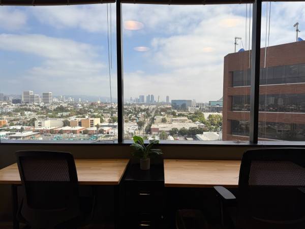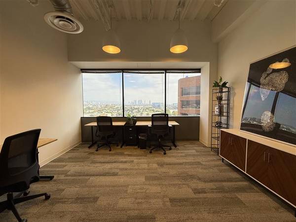 Step into Office One. A lockable, fully furnished executive suite with expansive windows framing panoramic views of the Hollywood Hills. This distraction-free, high-performance workspace is ideal for solo professionals, consultants, designers, founders, and remote teams who value privacy, prestige, and productivity in the heart of West LA.