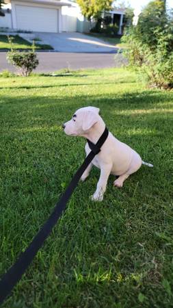Cachorro dogo argentino nacio 08/25/25 tiene una vacuna y desparacitado papa@s ala vista mama tienen pedigree Azul 100% dogo argentino macho..$800