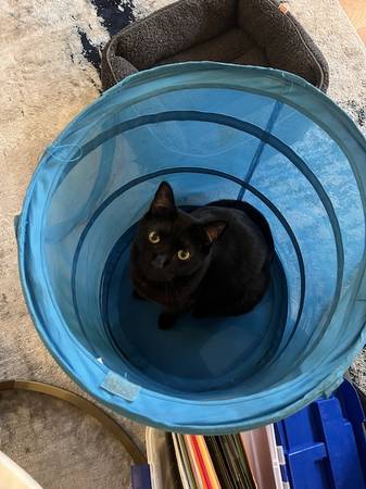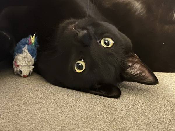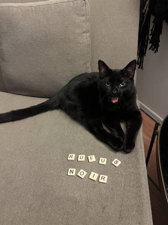 Rufus is a big boy who is full of love and has a curled-up tail that is almost always dangling over his back (a good sign of confidence and friendliness). He was born in May 2023. His shots are all up to date. He is litter-trained.