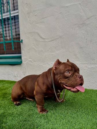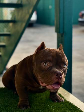 Rehoming my 6 month old chocolate male bully. Feel free to contact me for more information