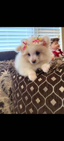 3 month old female Pomeranian looking for a home not vaccinated only dewormed rehoming fee is $1,000 if you have any questions please email me thanks