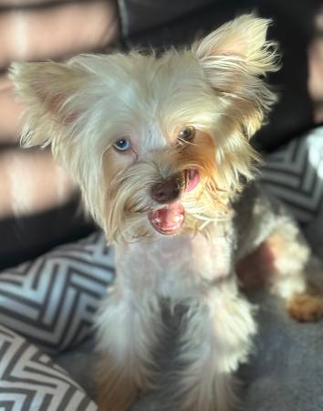Rehoming beautiful Chooclate Tan Merle Yorkie. Rehoming fee is $500. He is 7 1/2 months old. I’m rehoming him because I got him for my female Yorkie, but unfortunately his testicles did not drop, due to this he will need to be neutered. He’s very kind, smart, and playful and I would like him to go to a forever loving home. If interested call or text me at show contact info