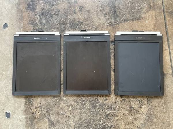 Selling three Lisco Regal II 8x10 film holders in excellent shape. Light-tight and working just like new. I've used these a few times but am selling the 8x10 elements for my camera and sticking with 4x5.