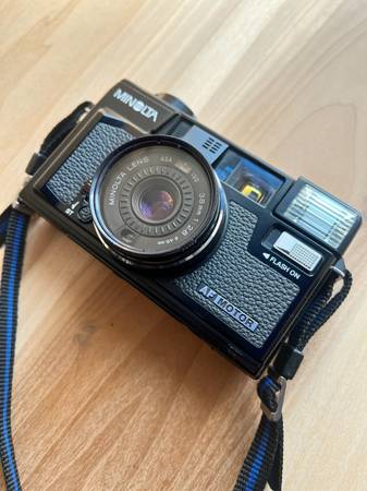 Film tested and fully functional Minolta Motor Hi-Matic AF2-M 35mm point and shoot with a fixed 38mm 2.8 lens. Works great. In clean condition with a new AA batteries.