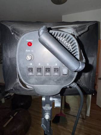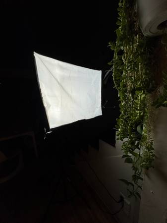 Works beautifully, diffuser, led i think, tripod. Light attaches to the tripod - its a little loose but probably needs tape, improvise like all talented lighting people do til you get the sweet spot. Hate to see it go but no space. Also very useful as a regular light at parties, people love, taking selfies in front of this thing because it lights them up very nicely.