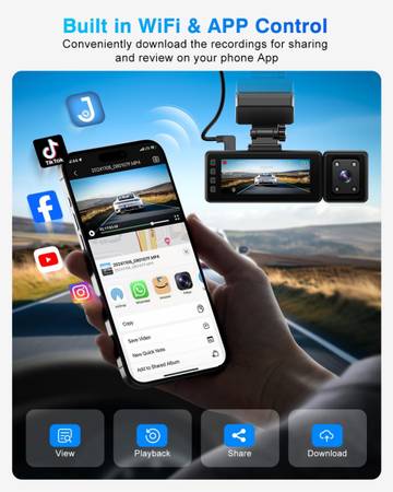 👉🏻【Built-In GPS & WiFi with App Control】Both Android and IOS users can connect to the dashcam WiFi, and then users can live preview, download, and manage videos through “Fiteye” app. You can share your videos with your friends or on the social media. This car dash cam is also equipped with GPS, which can provide traceable accurate location, speed, and route in the recordings.