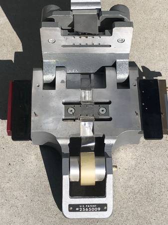 The VG OEM Hollywood Film Company RM-161 Film Splicer is a manual splicer designed for use in the film industry. Made in the United States by Hollywood Film Company, this model is a reliable and efficient tool for splicing film. With its serial number 6061 indicating its authenticity, this splicer is known for its quality and precision. Perfect for use in Hollywood, New York, or Chicago, this film splicer is a must-have for professionals in the film photography and projection industry.