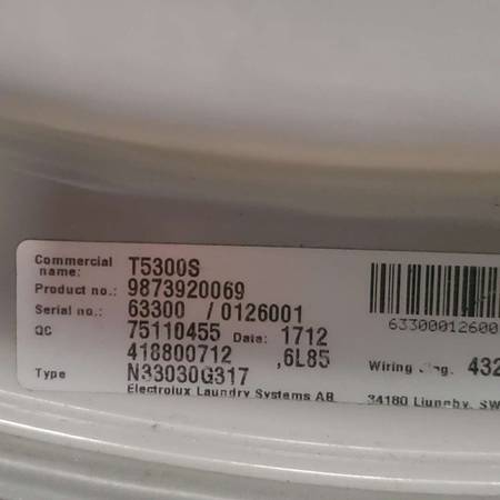 SPEED QUEEN 27LBS. MODEL: SC27MD2AU20001 Serial No: 0896087232